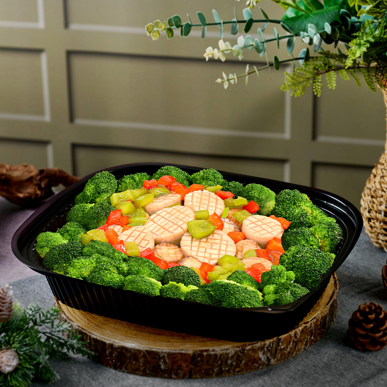 Broccoli with Vegetarian Scallop & Capsicums for 10pax. Available for delivery from 1- 31 Dec 2025. All images are for illustration purposes only.