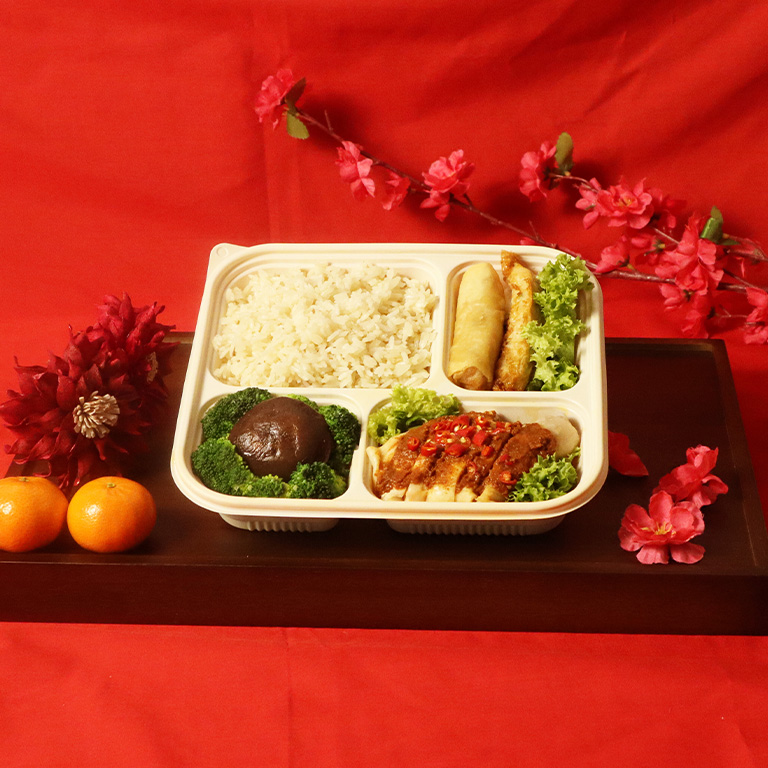 Celebrate the CNY with our Fortune Chicken Bento featuring our Sichuan Spicy Chicken, Braised Shiitake Mushroom with Broccoli, Spring Roll, Prawn Roll & Chicken Rice. Min. order of 6 bentos. Available for delivery from 3 Feb - 3 Mar 2026. All images are for illustration purposes only.