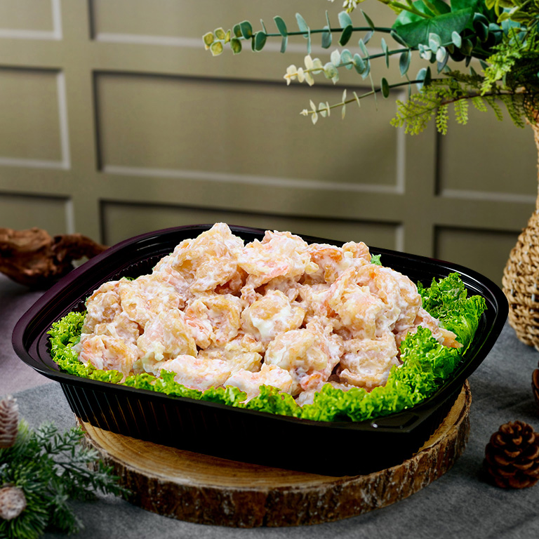 Plump, crispy-fried prawns coated in a creamy, tangy-sweet mayonnaise sauce. Available for delivery from 1 - 31 Dec 2025. All images are for illustration purposes only.