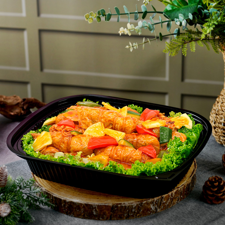 Vegetarian Sweet & Sour Prawn for 10pax. Available for delivery from 1 - 31 Dec 2025. All images are for illustration purposes only.