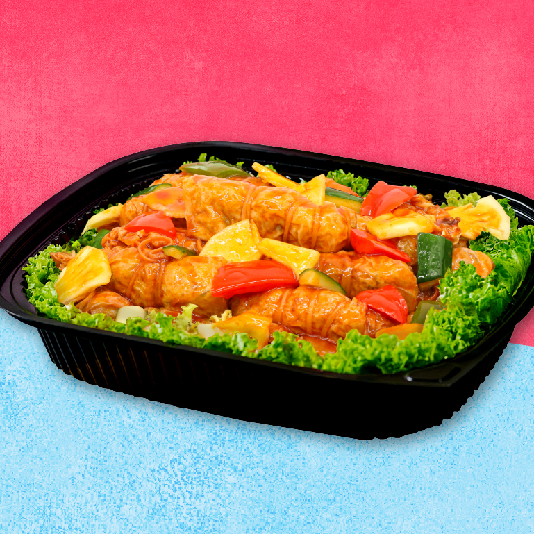 Vegetarian Sweet & Sour Prawn for 10pax. Available for delivery from 11 May - 15 June 2025. All images are for illustration purposes only.