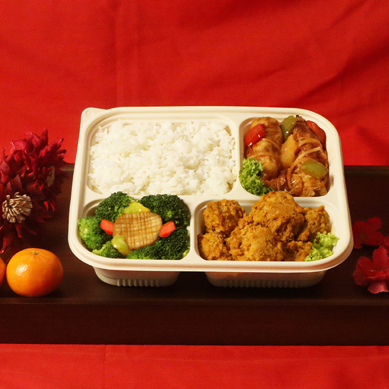 Celebrate the CNY with our Wealth Bento (Vegetarian) featuring our Vegetarian Rendang Chicken, Broccoli with Vegetarian Scallop & Capsicums, Vegetarian Sweet & Sour Prawn & Steamed White Rice. Min. order of 6 bentos. Available for delivery from 3 Feb - 3 Mar 2026 (Closed 17-18 Feb). All images are for illustration purposes only.